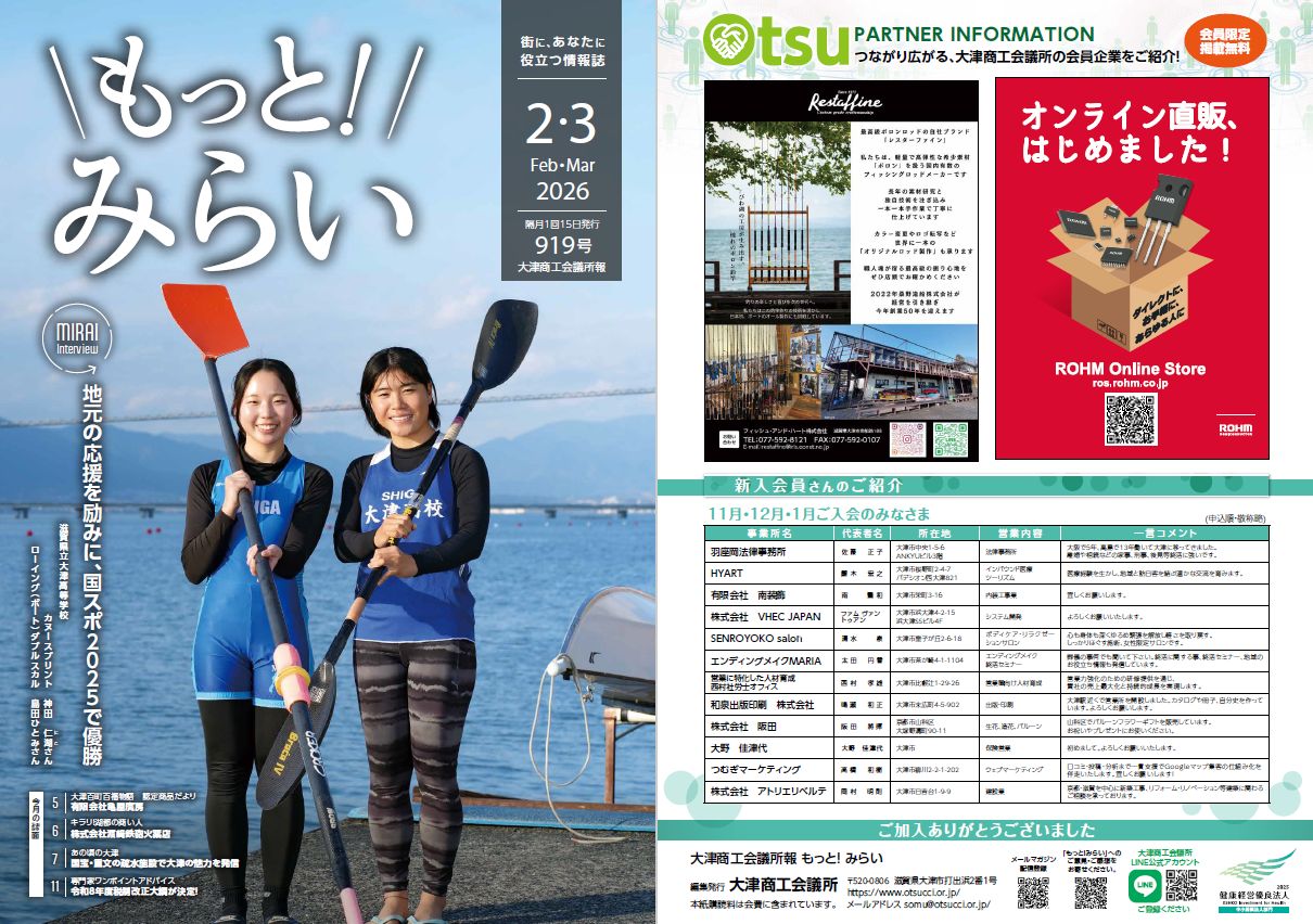 大津商工会議所会員企業様を中心に、発行している「もっと!みらい」(大津商工会議所報)です。pdfファイルにてご覧いただけます。(ご覧いただくためには、Adobe Readerが必要です。)