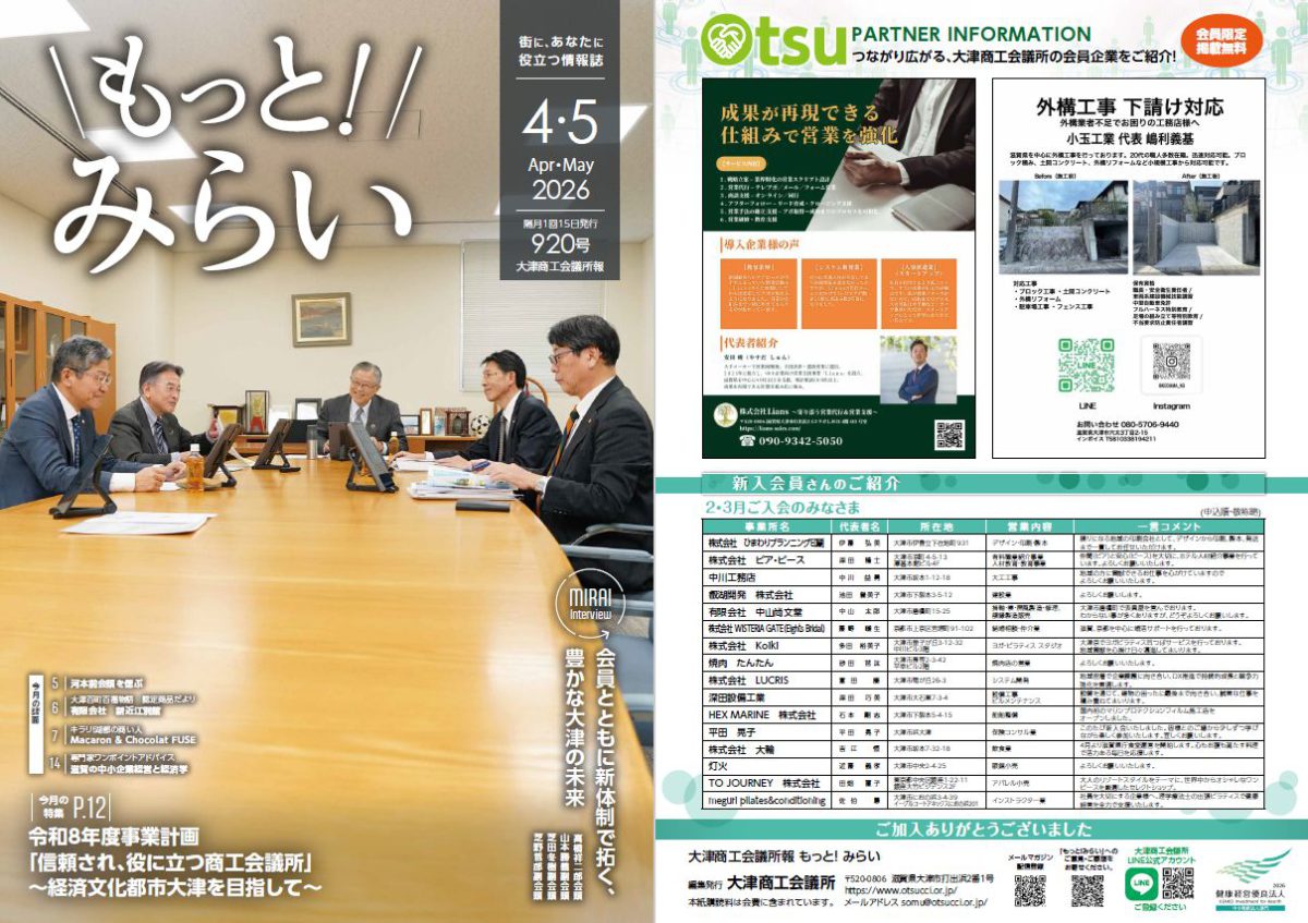 ”もっと!みらい”(大津商工会議所報)2026年(令和8年)4・5月号を発行しました