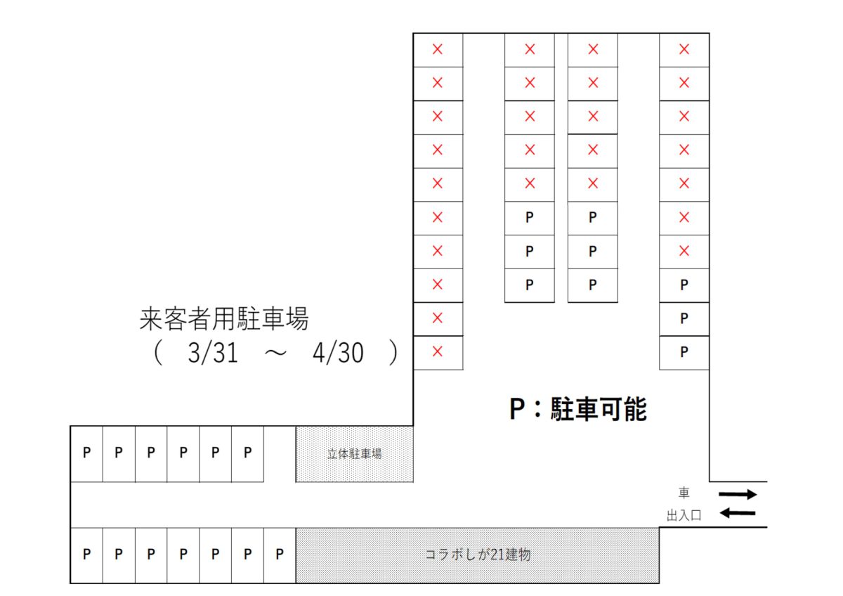 令和8年3月31日(火)~令和8年4月30日(木)の間、敷地内工事に伴い、コラボしが21来客者用駐車場の一部がご利用いただけません。そのため、駐車可能台数が通常より少なくなります。満車となる場合もございますので、ご来訪の際は、公共交通機関のご利用、または近隣の有料駐車場利用をご検討ください。ご不便をおかけしますが、何卒ご理解・ご協力のほどよろしくお願いいたします。